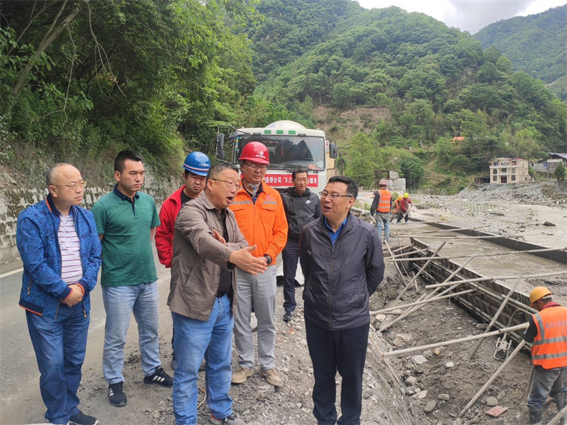 受去年“8·22”特大暴雨災(zāi)害影響,寶興縣境內(nèi)的國道351線五十多處路段被洪水沖毀,其中管橋段和新華村段路基受損嚴(yán)重。劉平一行先后來到管橋、鍋巴巖、胡加灣等項(xiàng)目建設(shè)現(xiàn)場實(shí)地調(diào)研,詳細(xì)了解工程建設(shè)進(jìn)展情況。
