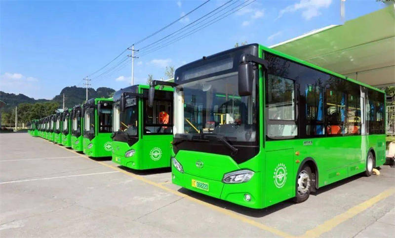 煥然一新的綠色新能源電動(dòng)公交車列裝上線運(yùn)營(yíng)