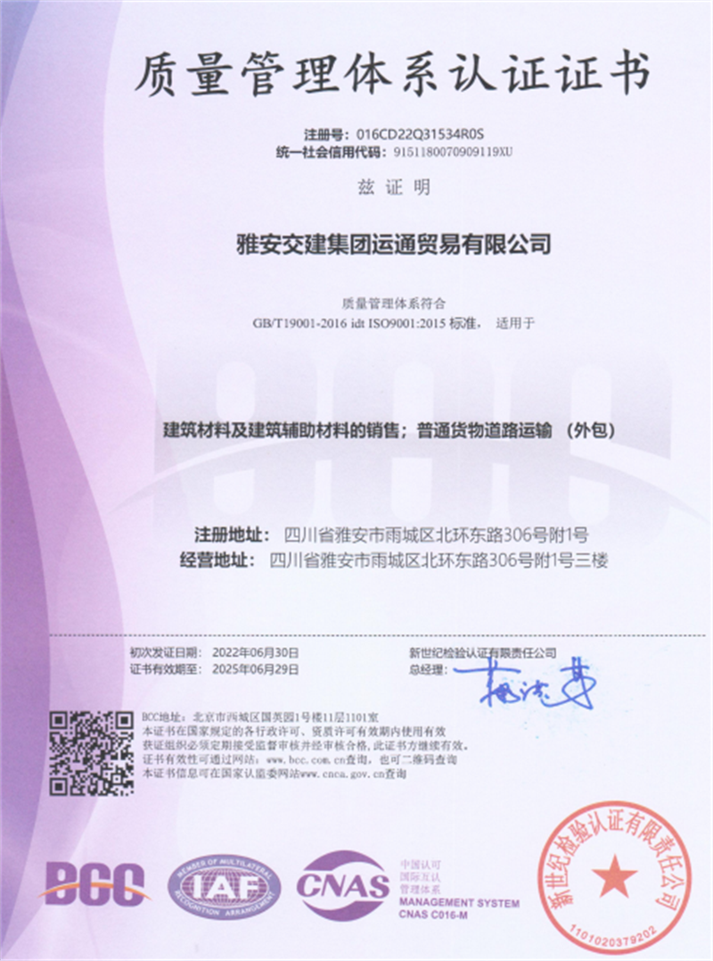 交建運(yùn)通公司順利通過ISO9001質(zhì)量管理體系認(rèn)證