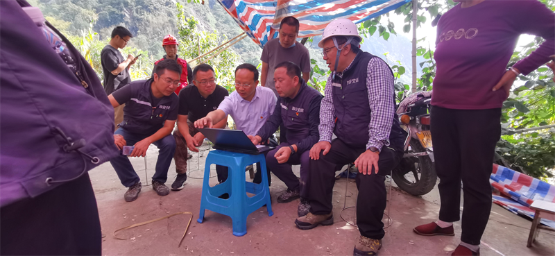 和坪村兩組400余名群眾,遍布于縣道X073兩側(cè)。為全覆蓋掌握該村道路分布、垮塌點(diǎn)位和房屋分布情況,交建集團(tuán)發(fā)揮技術(shù)優(yōu)勢(shì),集團(tuán)黨委書記、董事長(zhǎng)漆家華一線督導(dǎo)、多方協(xié)調(diào),組織5名相關(guān)專業(yè)技術(shù)人員,累計(jì)徒步跋涉20余小時(shí),從6個(gè)點(diǎn)位實(shí)施無(wú)人機(jī)多角度航拍,累計(jì)拍攝照片1300余張,全覆蓋制作360°實(shí)景圖。并結(jié)合走訪入戶情況,對(duì)全村137處村民房屋進(jìn)行精準(zhǔn)定位,繪制具體房屋布置圖,為市縣包保工作組精準(zhǔn)開展工作提供有力的技術(shù)支撐。