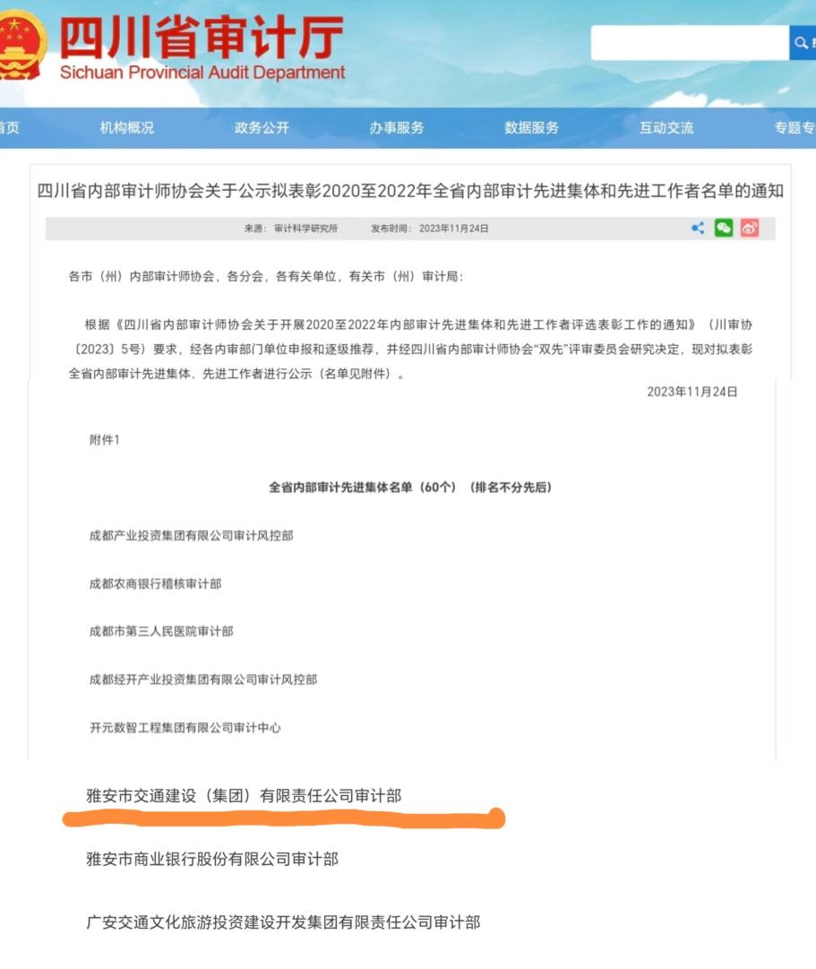 雅安交建集團(tuán)黨委高度重視內(nèi)部審計工作,公司成立獨立內(nèi)審機(jī)構(gòu),由集團(tuán)黨委書記、董事長直接分管,按照內(nèi)審計劃和黨委、董事會安排,獨立開展工作,并定期向黨委、董事會匯報內(nèi)審工作開展情況。近年來,公司已建立《內(nèi)部審計工作管理辦法》《經(jīng)濟(jì)責(zé)任審計實施細(xì)則》等內(nèi)部審計制度,通過全面審計、專項審計和“1+N”內(nèi)部監(jiān)督檢查工作機(jī)制,規(guī)范集團(tuán)及子公司制度建設(shè),提升管理水平,助力集團(tuán)創(chuàng)建“千億國企,品質(zhì)交建”。