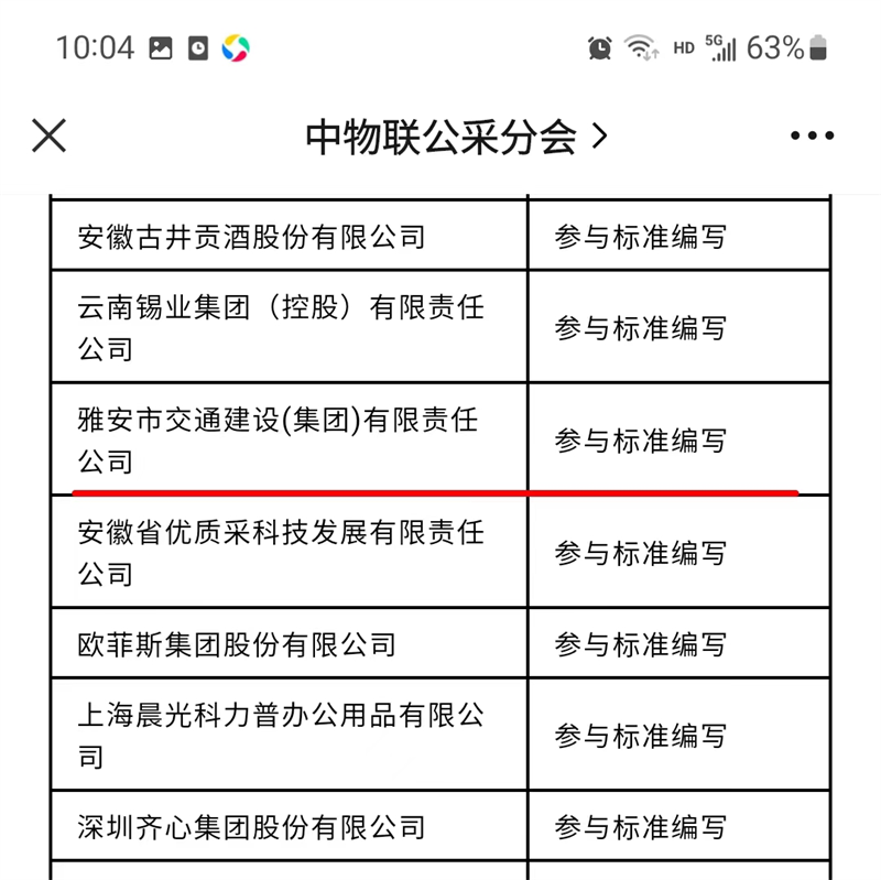 4月20日,由中國物流與采購聯(lián)合會批準立項,中國物流與采購聯(lián)合會公共采購分會牽頭編制,中國物流與采購聯(lián)合會團體標準化技術(shù)委員會歸口的團體標準《國有企業(yè)采購操作規(guī)范》正式發(fā)布,雅安市交通(建設(shè))集團有限公司是本次團體標準起草組成員單位中全國唯一一家地級市屬國有企業(yè)平臺公司。