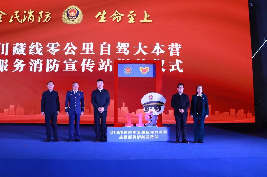 啟動儀式上,與會領(lǐng)導(dǎo)為我市第18個消防志愿服務(wù)宣傳站——318川藏線零公里自駕大本營消防志愿服務(wù)宣傳站揭牌,該站的建立開啟了地標(biāo)打卡地消防宣傳工作新篇章,將更好地為群眾開展消防安全培訓(xùn)服務(wù)、傳播消防安全知識。