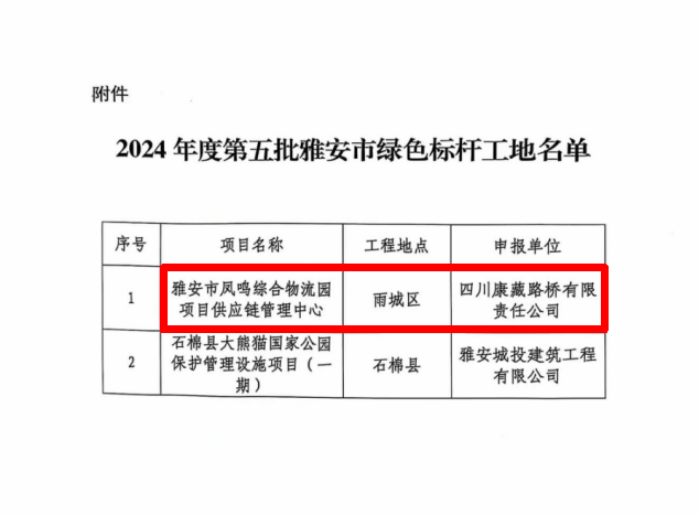 鳳鳴綜合物流園項目供應鏈管理中心 被評為雅安市綠色標桿工地
