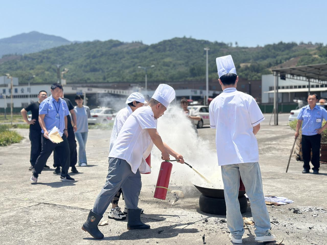 正式演練前,公司副總經(jīng)理鄭循禮講述了“防災(zāi)減災(zāi)日”的由來,傳授了防震避難、防火防電、防洪防汛等方面的基本知識,專業(yè)人員對消防器材使用方式進行了教學(xué),并組織廚師、安全部重點人員模擬起火現(xiàn)場,“零距離”體驗消防護具。隨后,開展地震應(yīng)急演練,在模擬地震的預(yù)警信號發(fā)出后,全體職工運用學(xué)習(xí)的避震知識,雙手抱頭、蜷縮身體、降低重心,快速有序撤離室內(nèi)到達戶外安全區(qū)域。