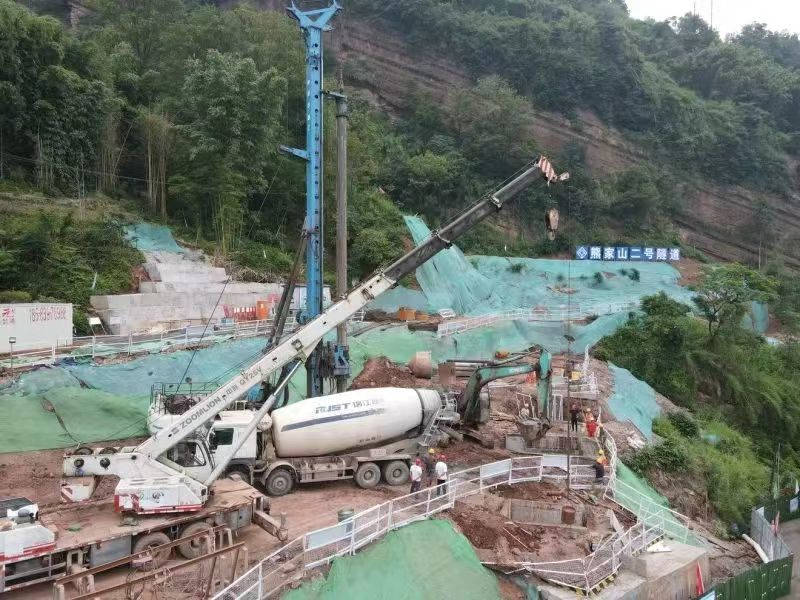 “咚咚咚……”在雨城區(qū)多營鎮(zhèn)五營村熊家山二號隧道出口端空地上,旋挖鉆機(jī)開足馬力,朝著地層深處掘進(jìn),不斷發(fā)出富有節(jié)奏的聲響!懊總樁基有二十多米深!眹318線名山區(qū)黑竹(成都界)至雨城區(qū)多營段改建工程項(xiàng)目副經(jīng)理林洲,每天都要到各施工點(diǎn)位查看進(jìn)度。他說,熊家山二號隧道附近山體為順層帶,易產(chǎn)生滑坡,進(jìn)洞施工前需要先在洞外打抗滑樁,以確保施工安全,目前還在開展剩下3根抗滑樁的施工。