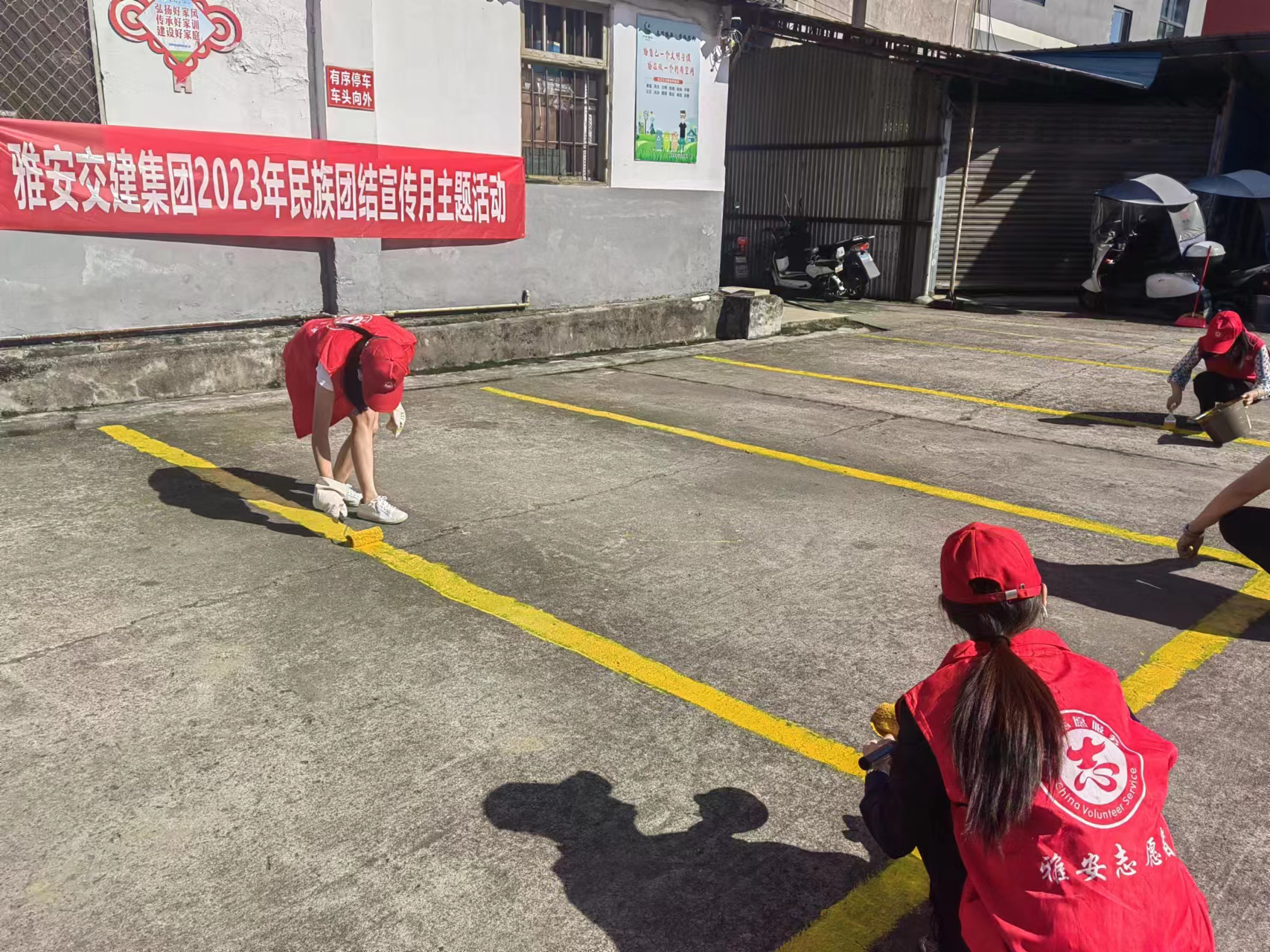 活動(dòng)現(xiàn)場分宣傳講解、上門服務(wù)、衛(wèi)生清潔、停車場油漆添補(bǔ)4個(gè)小組。通過發(fā)放宣傳資料、現(xiàn)場答疑解惑、衛(wèi)生死角清掃、停車線添補(bǔ)等活動(dòng),向小區(qū)住戶、街道過往市民、車站乘客等群眾宣傳民族團(tuán)結(jié)示范市創(chuàng)建工作相關(guān)問題和民族團(tuán)結(jié)相關(guān)知識,進(jìn)一步提升群眾對民族團(tuán)結(jié)進(jìn)步的認(rèn)識,激發(fā)居民促進(jìn)共同繁榮發(fā)展的主動(dòng)意識,攜手推進(jìn)民族團(tuán)結(jié)進(jìn)步創(chuàng)建,助力雅安市創(chuàng)建民族團(tuán)結(jié)進(jìn)步示范市工作。