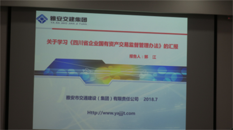 7月23日上午,雅安交建集團在四樓會議室召開“依法治企”專題學習會,會議傳達學習了《蘭開馳同志在全市生態(tài)環(huán)境保護大會上的講話》、《四川省國有資產交易監(jiān)督管理辦法》。