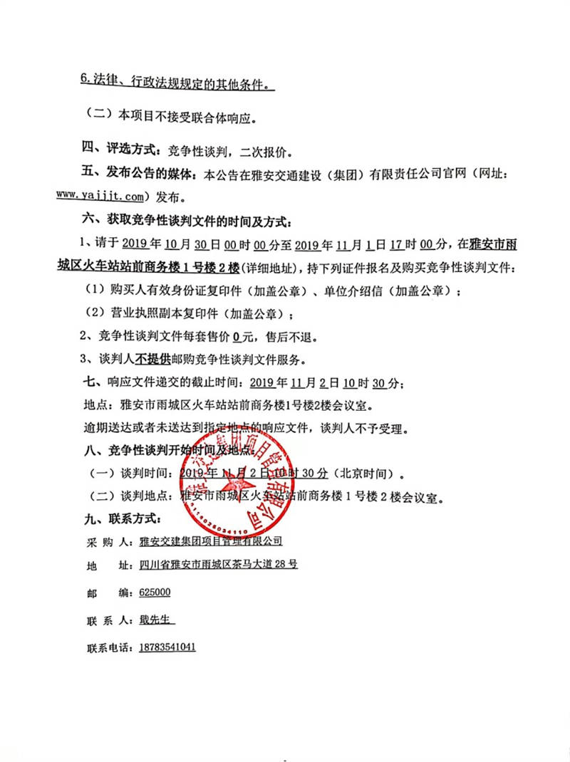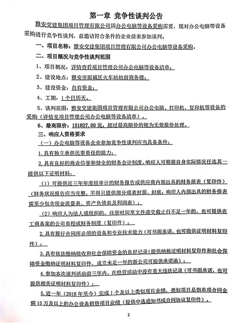 雅安交建集團項目管理有限公司辦公電腦等設備采購競爭性談判公告