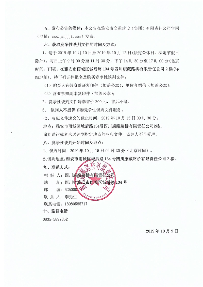 四川康藏路橋有限責(zé)任公司國道351線磽磧至夾金山路面改造工程波形護欄采購競爭性談判結(jié)果公示