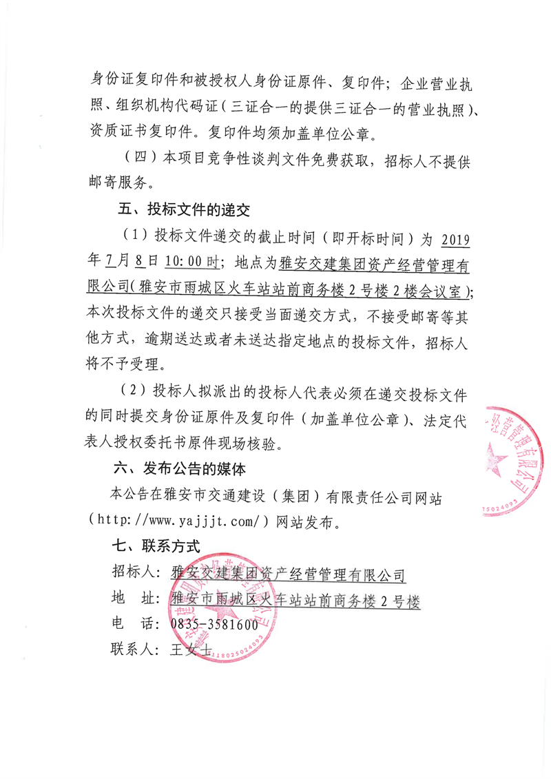 雅安交建集團(tuán)資產(chǎn)經(jīng)營(yíng)管理有限公司成雅高速金雞關(guān)互通及服務(wù)區(qū)項(xiàng)目(雨名快速通道)沙盤模型制作安裝項(xiàng)目競(jìng)爭(zhēng)性談判公告