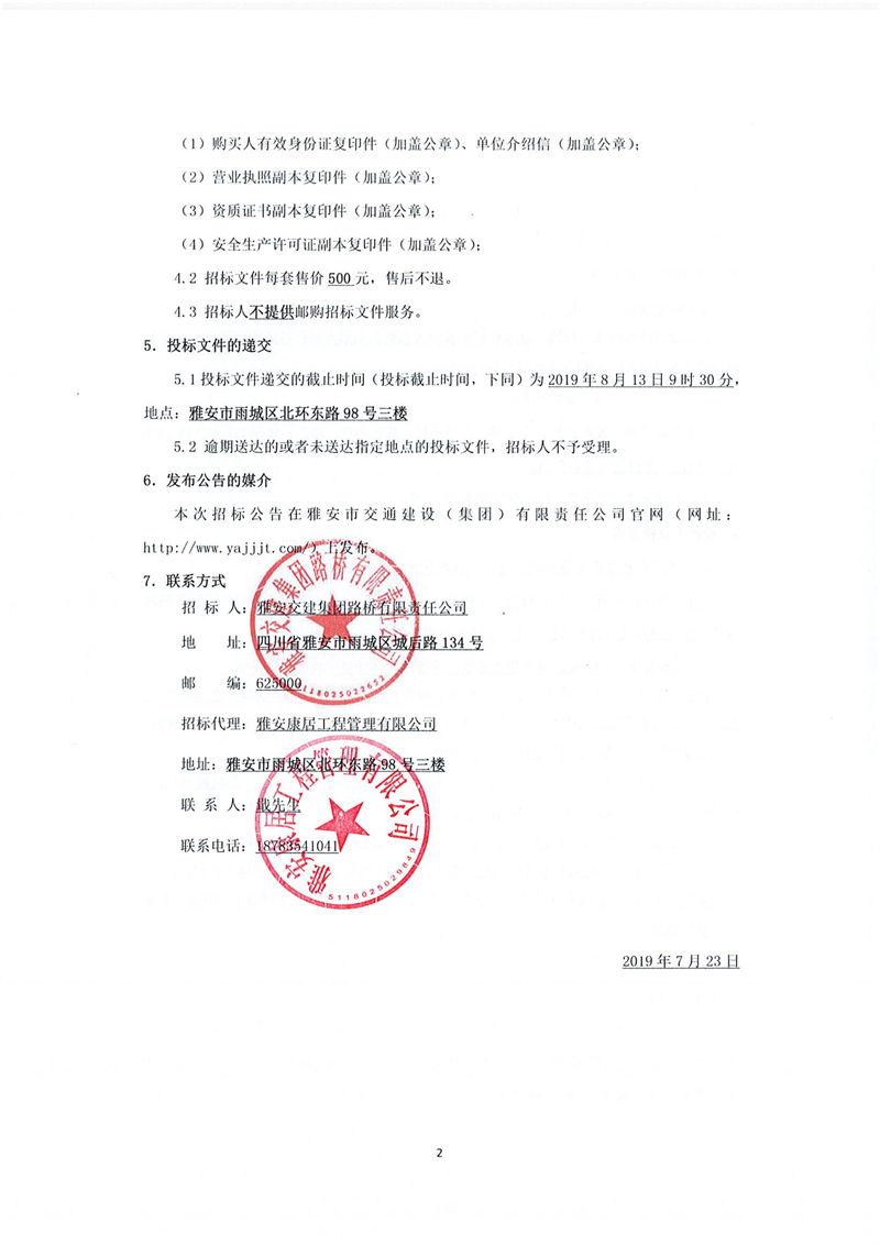 雅安交建集團(tuán)路橋有限責(zé)任公司國道351線磽磧至夾金山段路面改造工程波形護(hù)欄采購招標(biāo)公告