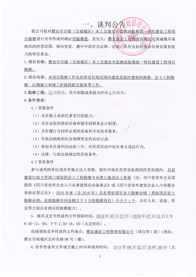 雅安市市級(jí)(含雨城區(qū))水上交通安全監(jiān)測巡航救助一體化建設(shè)工程項(xiàng)目勘察