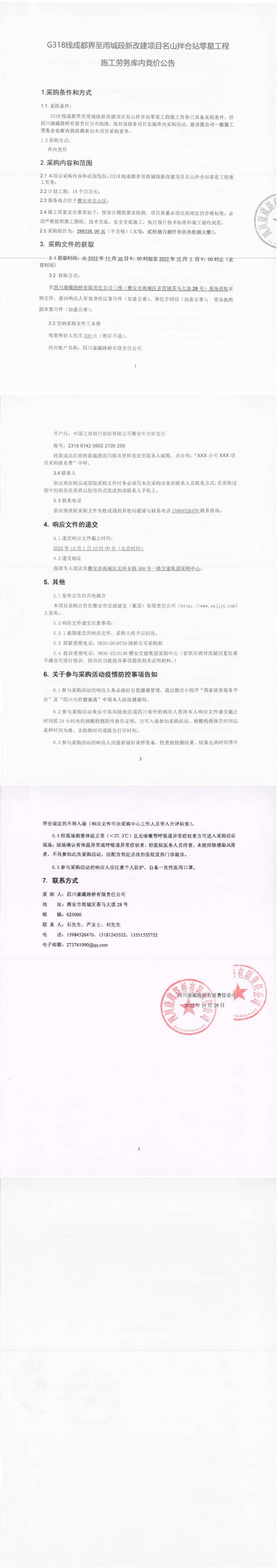 四川康藏路橋有限責(zé)任公司G318線成都界至雨城段新改建項(xiàng)目名山拌合站零星工程施工勞務(wù)庫內(nèi)競價公告