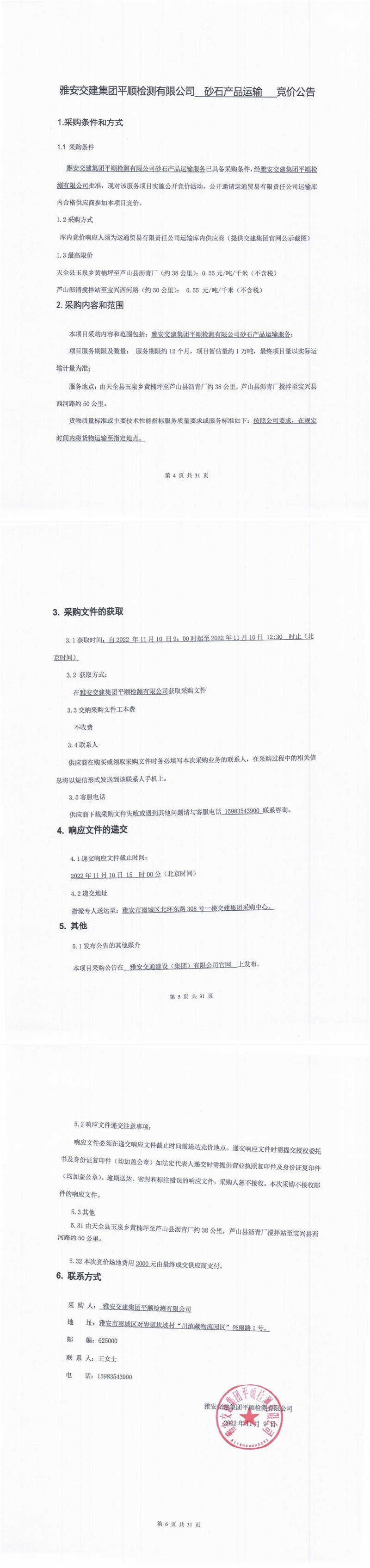 雅安交建集團(tuán)平順檢測有限公司砂石產(chǎn)品運輸競價公告