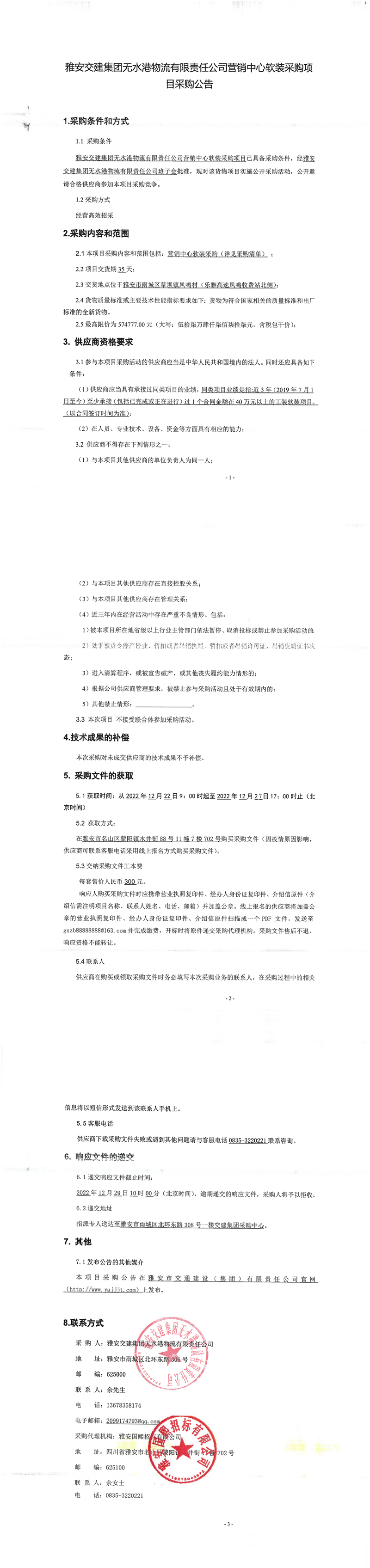 雅安交建集團(tuán)無(wú)水港物流有限責(zé)任公司營(yíng)銷中心軟裝采購(gòu)項(xiàng)目采購(gòu)公告
