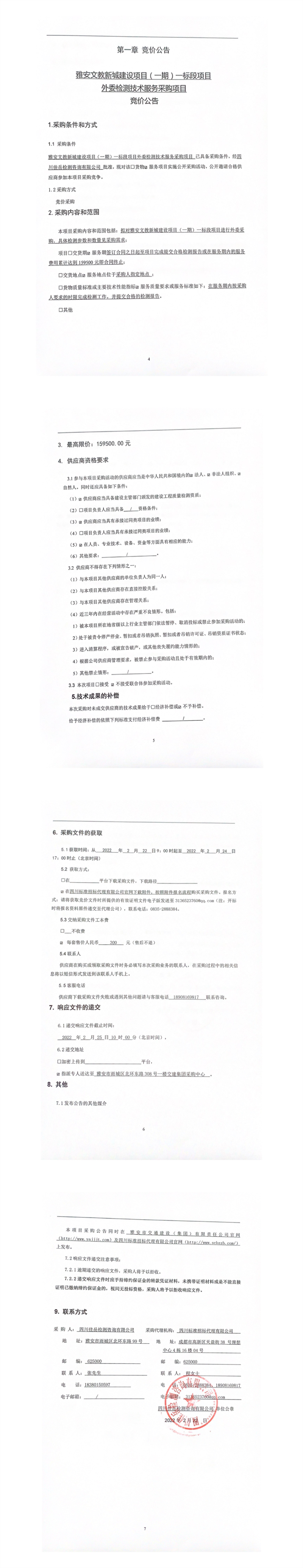 四川佳岳檢測(cè)咨詢有限公司雅安文教新城建設(shè)項(xiàng)目(一期)一標(biāo)段項(xiàng)目外委檢測(cè)技術(shù)服務(wù)采購(gòu)項(xiàng)目競(jìng)價(jià)公告