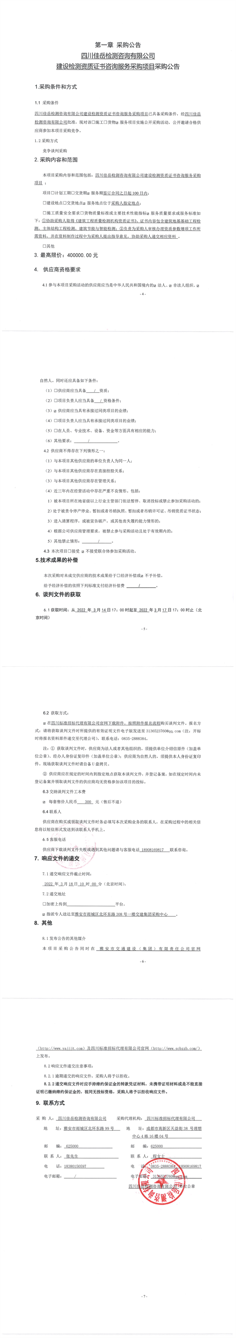 四川佳岳檢測咨詢有限公司建設(shè)檢測資質(zhì)證書咨詢服務(wù)采購項目采購公告