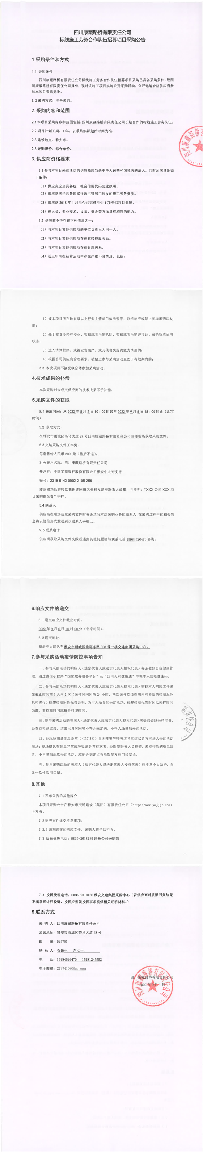 四川康藏路橋有限責(zé)任公司標線施工勞務(wù)合作隊伍招募項目采購公告