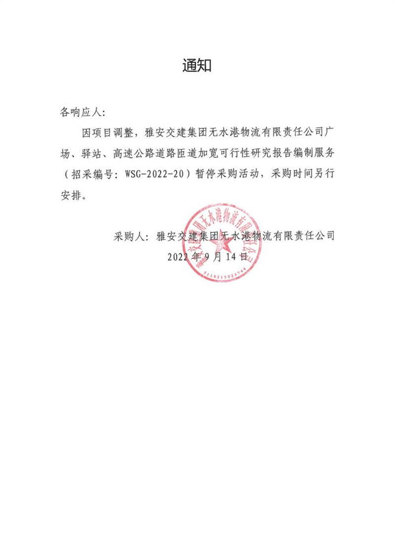 雅安交建集團無水港物流有限責任公司廣場、驛站、高速公路道路匝道加寬可行性研究報告編制服務采購通知