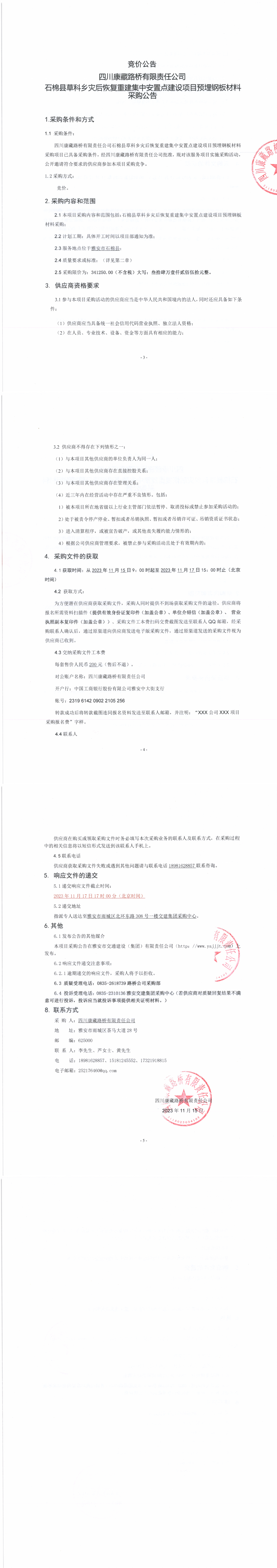 四川康藏路橋有限責任公司石棉縣草科鄉(xiāng)災(zāi)后恢復重建集中安置點建設(shè)項目預埋鋼板材料采購公告