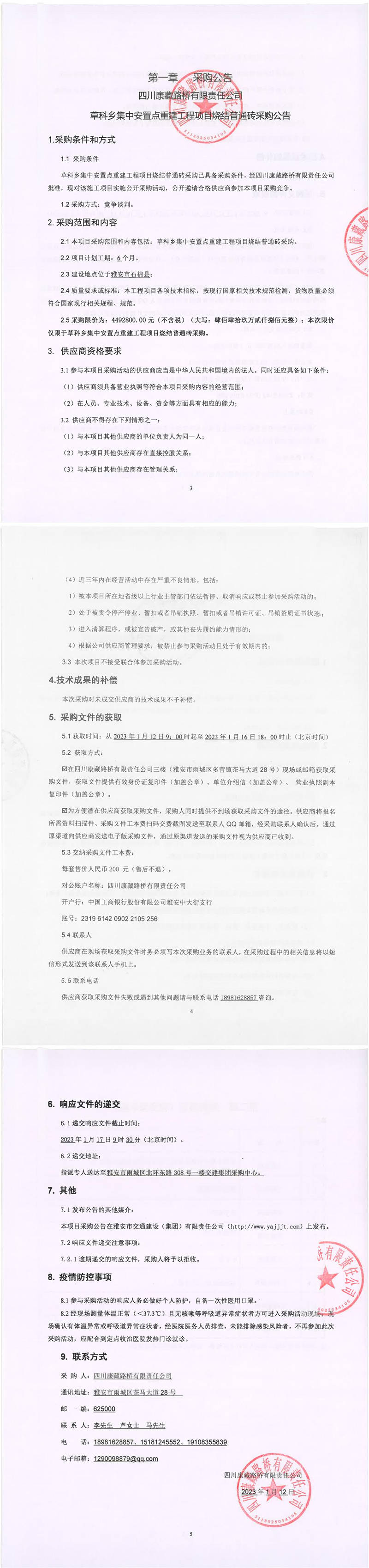 四川康藏路橋有限責(zé)任公司石棉草科鄉(xiāng)集中安置點(diǎn)重建工程項(xiàng)目燒結(jié)普通磚采購(gòu)公告