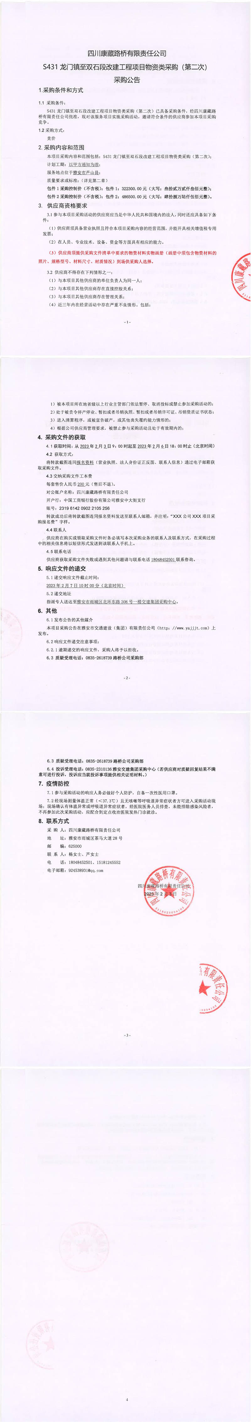四川康藏路橋有限責(zé)任公司S431龍門鎮(zhèn)至雙石段改建工程項(xiàng)目物資類采購(gòu)(第二次)采購(gòu)公告