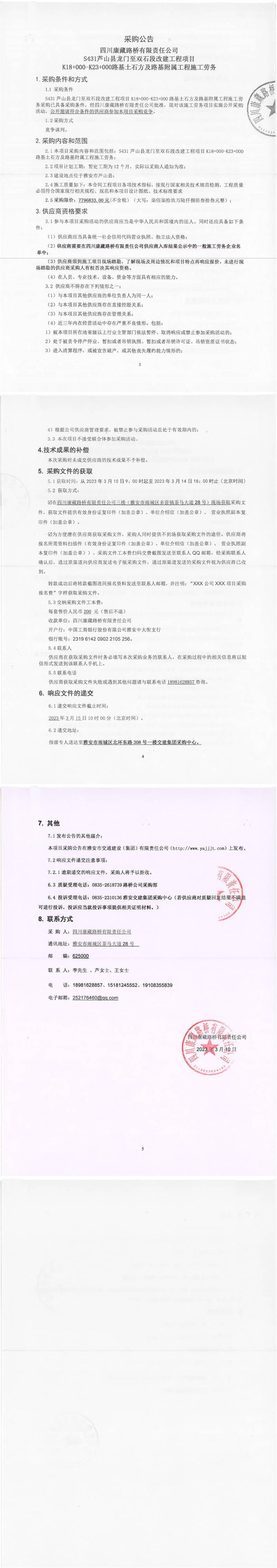 四川康藏路橋有限責(zé)任公司S431蘆山縣龍門至雙石段改建工程項目K18+000-K23+000路基土石方及路基附屬工程施工勞務(wù)采購公告