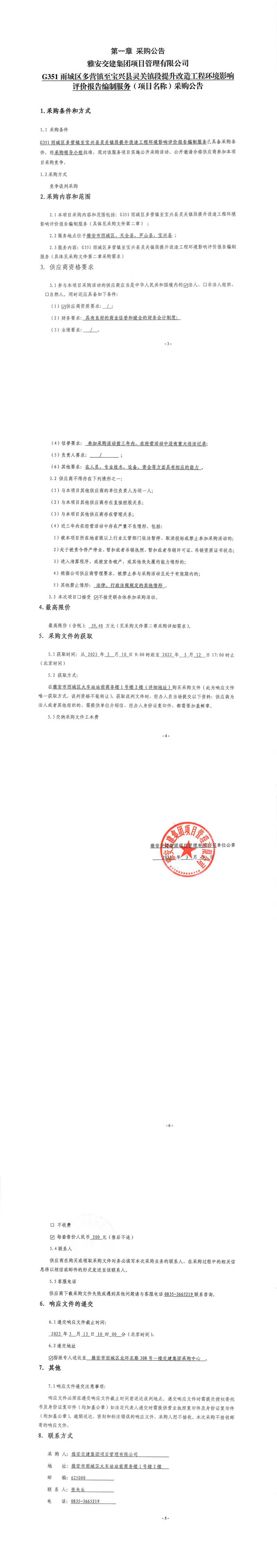 雅安交建集團項目管理有限公司G351雨城區(qū)多營鎮(zhèn)至寶興縣靈關(guān)鎮(zhèn)段提升改造工程環(huán)境影響評價報告編制服務(wù)(項目名稱)采購公告
