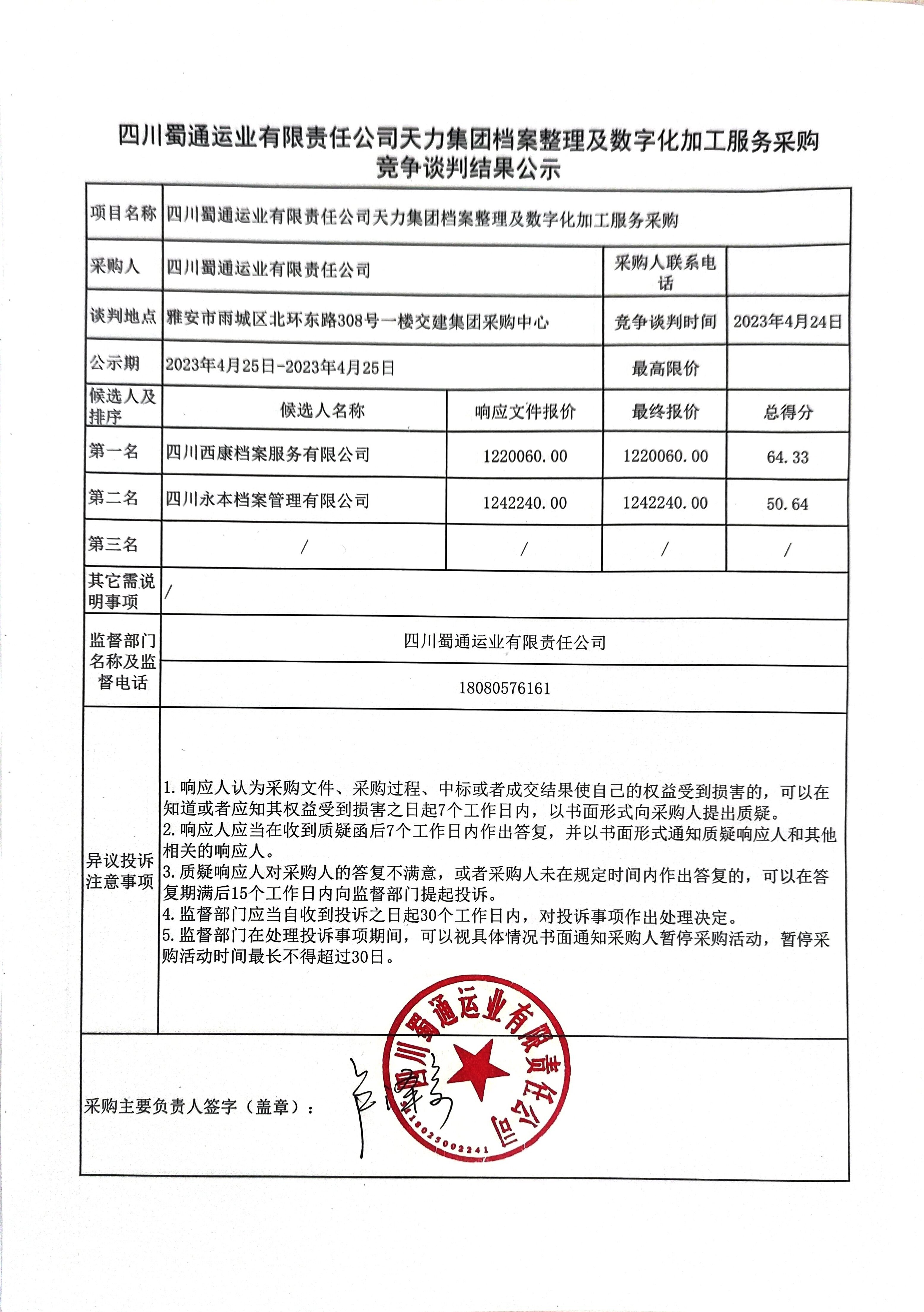 四川蜀通運業(yè)有限責任公司天力集團檔案整理及數(shù)字化加工服務采購競爭談判結(jié)果公示