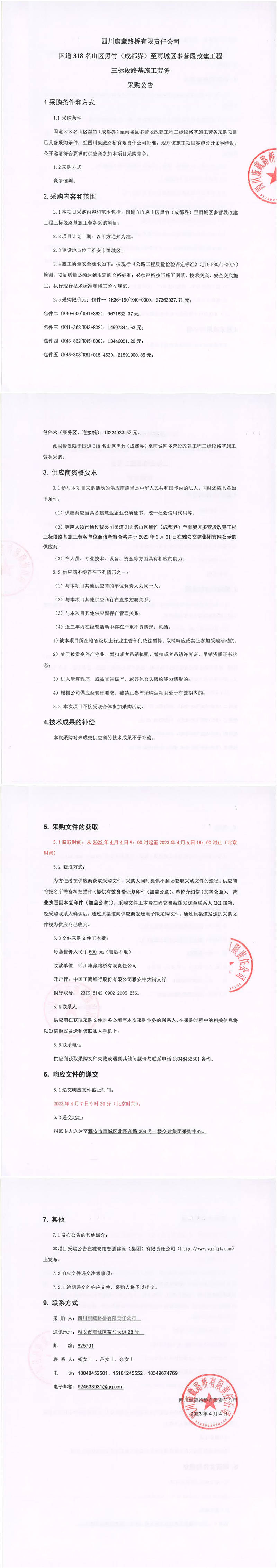 四川康藏路橋有限責(zé)任公司國道318名山區(qū)黑竹(成都界)至雨城區(qū)多營段改建工程三標(biāo)段路基施工勞務(wù)采購公告