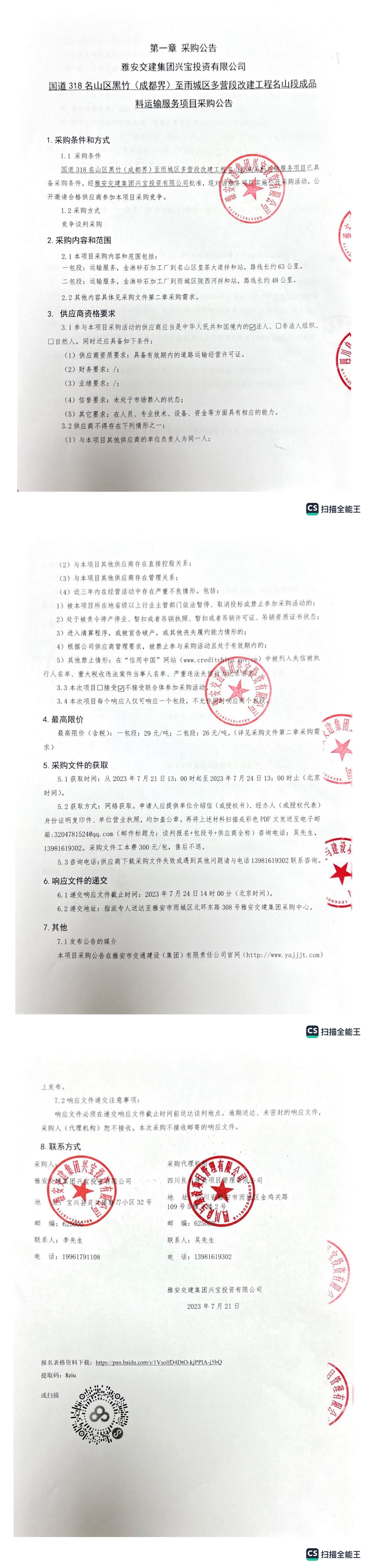 雅安交建集團(tuán)興寶投資有限公司國道318名山區(qū)黑竹(成都界)至雨城區(qū)多營段改建工程名山段成品料運(yùn)輸服務(wù)項(xiàng)目采購公告