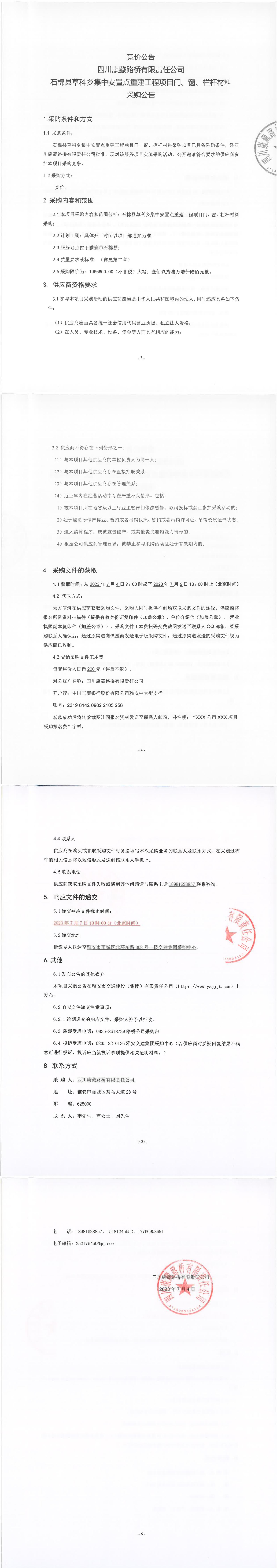 四川康藏路橋有限責(zé)任公司石棉縣草科鄉(xiāng)集中安置點(diǎn)重建工程項目門、窗、欄桿材料采購公告