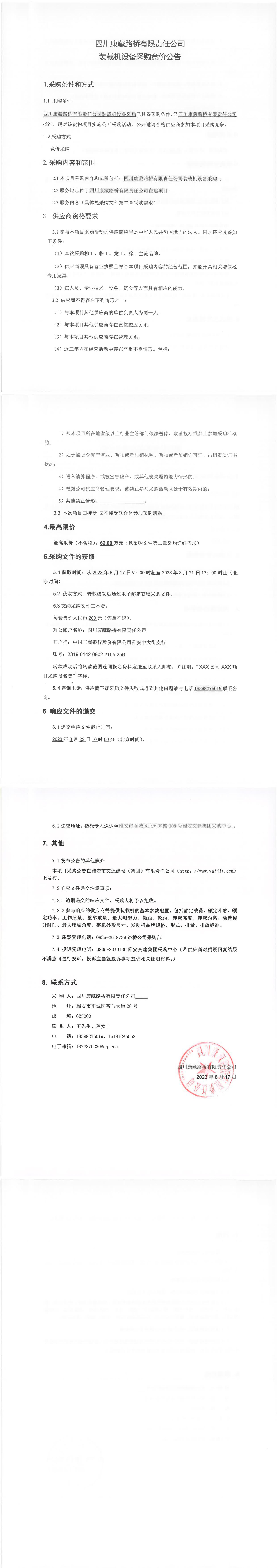 四川康藏路橋有限責任公司裝載機設(shè)備采購競價公告