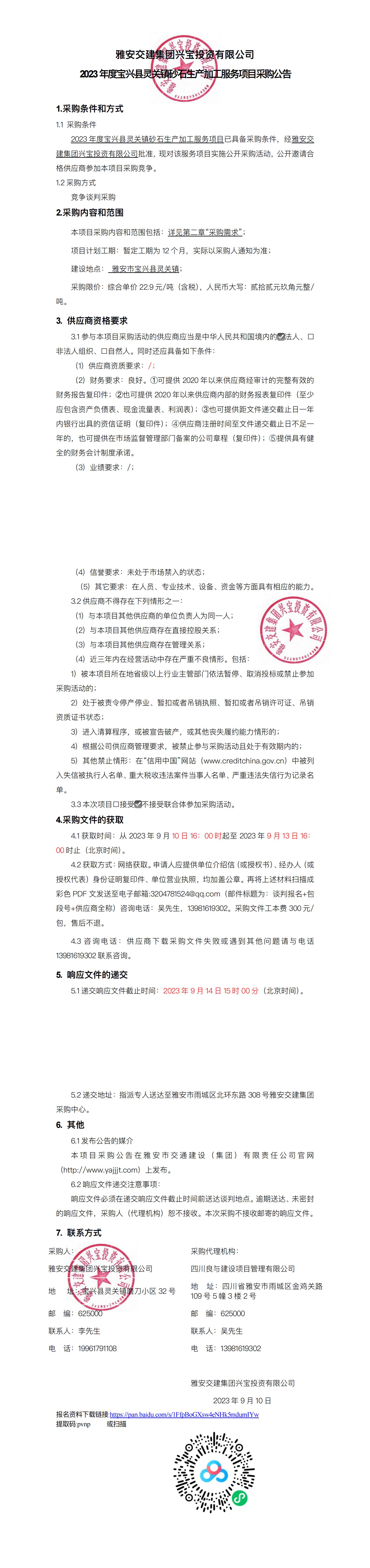 雅安交建集團興寶投資有限公司2023年度寶興縣靈關(guān)鎮(zhèn)砂石生產(chǎn)加工服務(wù)項目采購公告