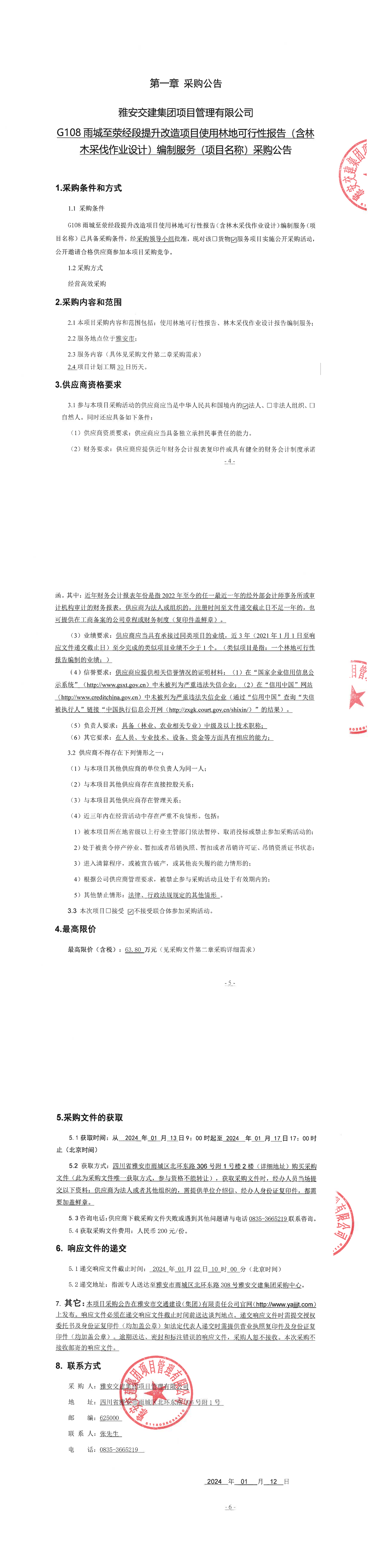 雅安交建集團(tuán)項(xiàng)目管理有限公司G108雨城至滎經(jīng)段提升改造項(xiàng)目使用林地可行性報告(含林木采伐作業(yè)設(shè)計(jì))編制服務(wù)(項(xiàng)目名稱)采購公告
