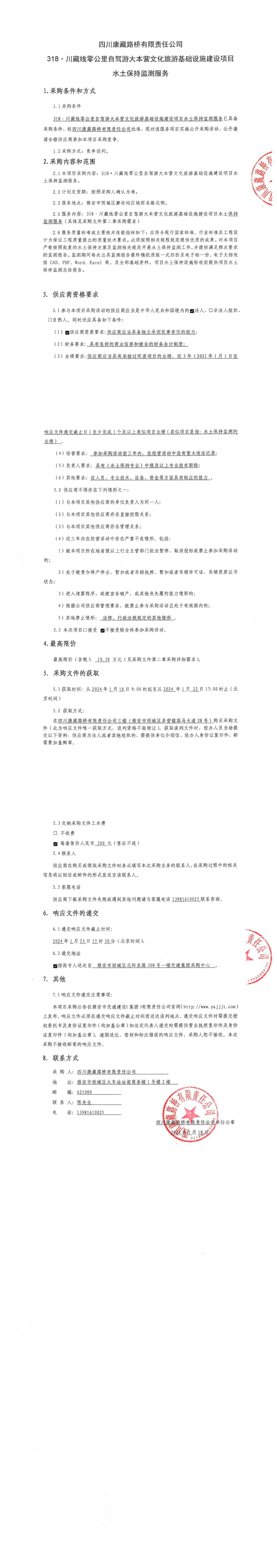 四川康藏路橋有限責(zé)任公司318·川藏線零公里自駕游大本營文化旅游基礎(chǔ)設(shè)施建設(shè)項目水土保持監(jiān)測服務(wù)采購公告