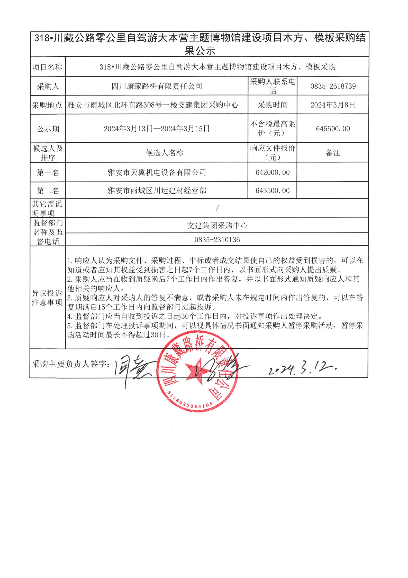 四川康藏路橋有限責(zé)任公司318•川藏公路零公里自駕游大本營主題博物館建設(shè)項目木方、模板采購結(jié)果公示