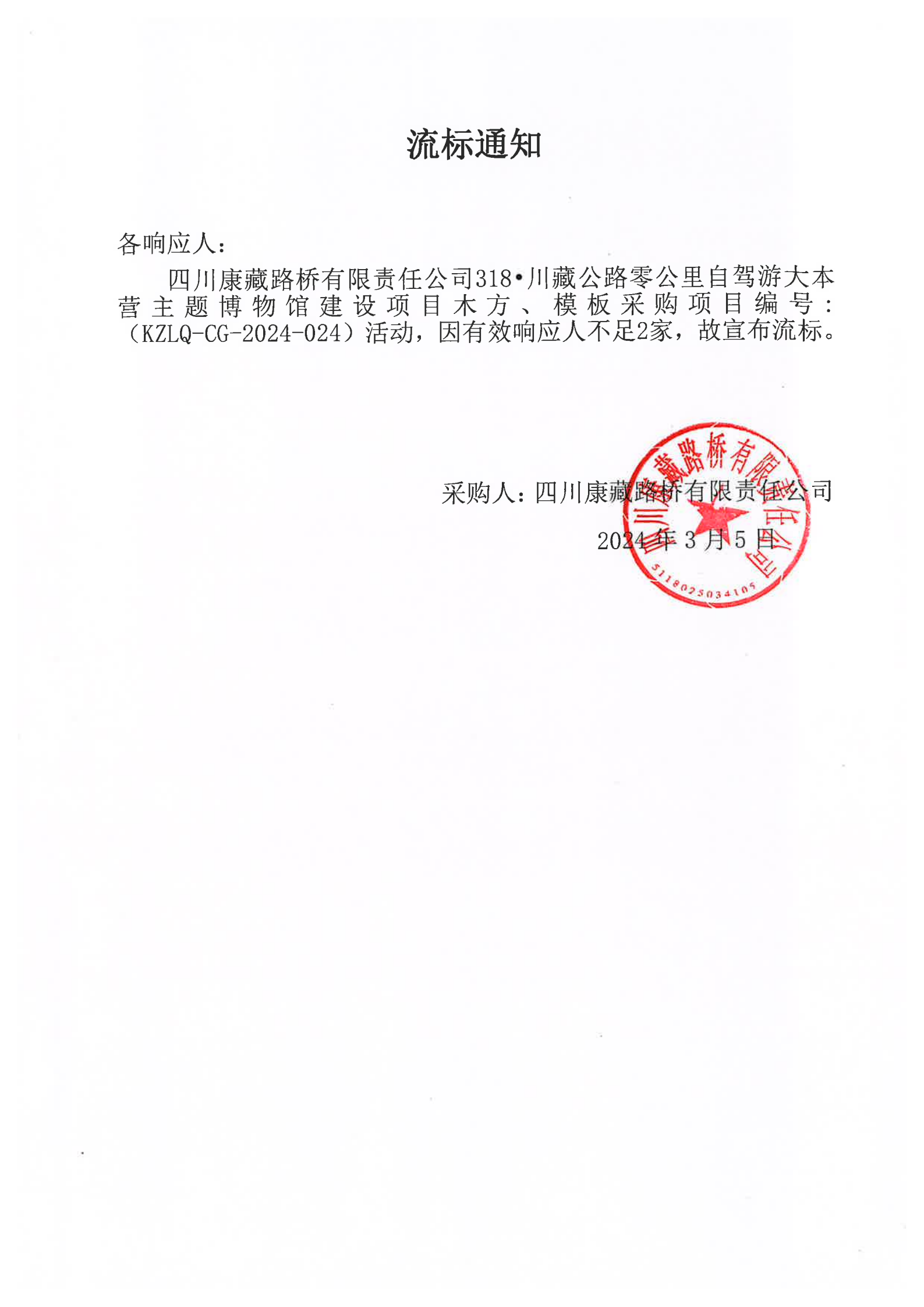 四川康藏路橋有限責任公司318·川藏公路零公里自駕游大本營主題博物館建設(shè)項目木方、模板采購流標通知