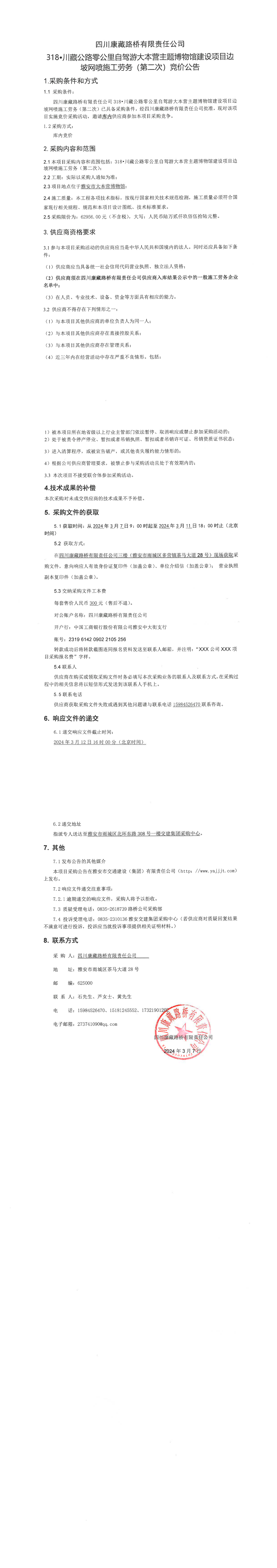 四川康藏路橋有限責任公司318·川藏公路零公里自駕游大本營主題博物館建設(shè)項目邊坡網(wǎng)噴施工勞務(第二次)競價公告