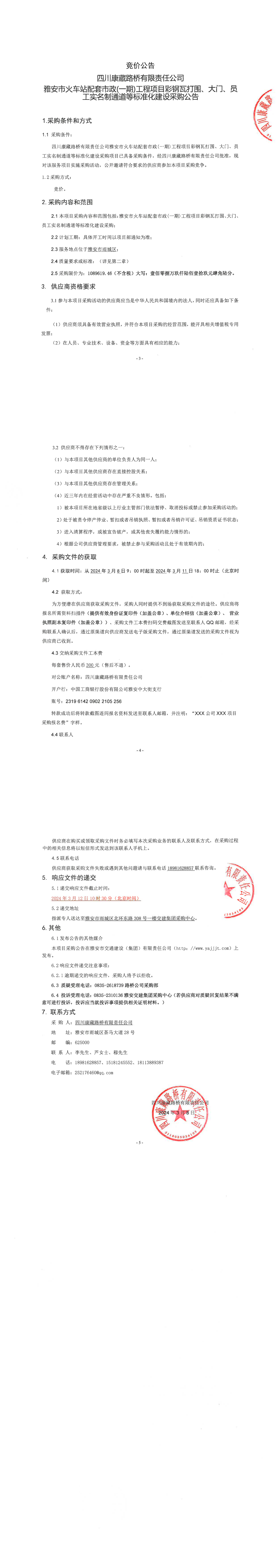 四川康藏路橋有限責(zé)任公司雅安市火車站配套市政(一期)工程項目彩鋼瓦打圍、大門、員工實名制通道等標(biāo)準化建設(shè)采購公告