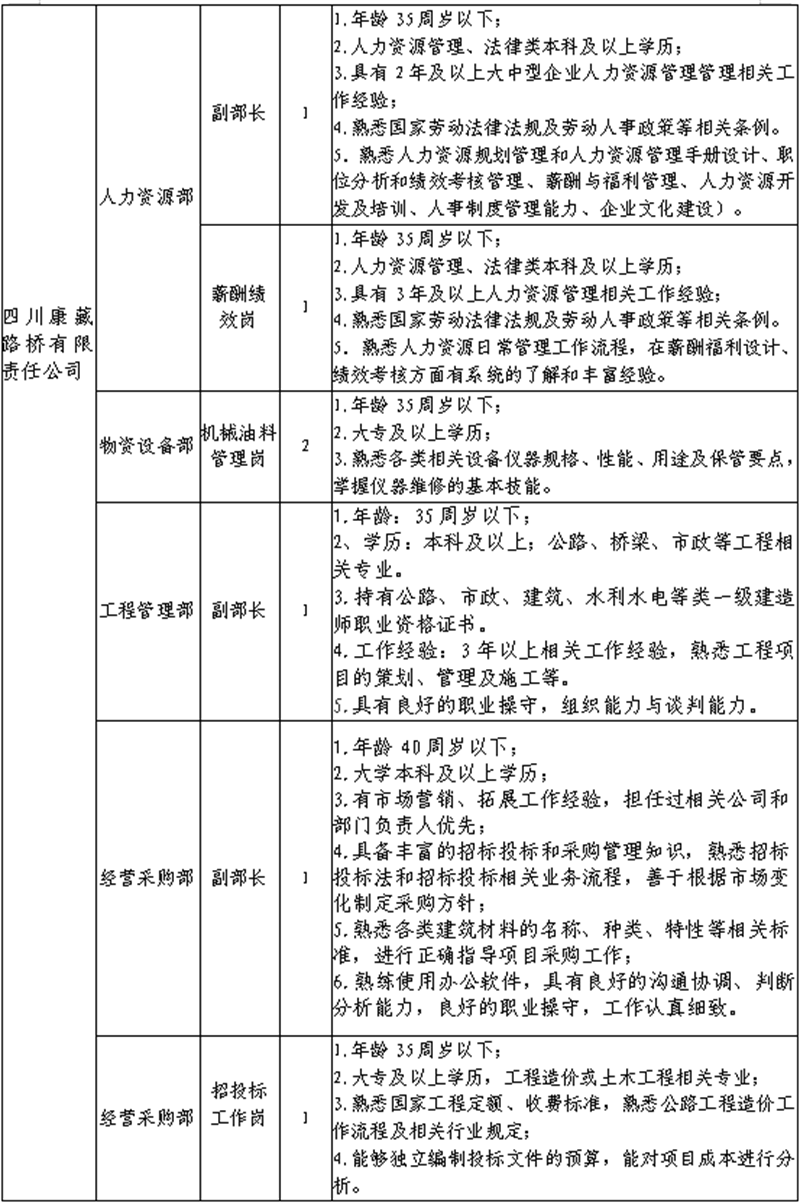 雅安交建集團關(guān)于公開招聘所屬子公司工作人員的公告(路橋公司)