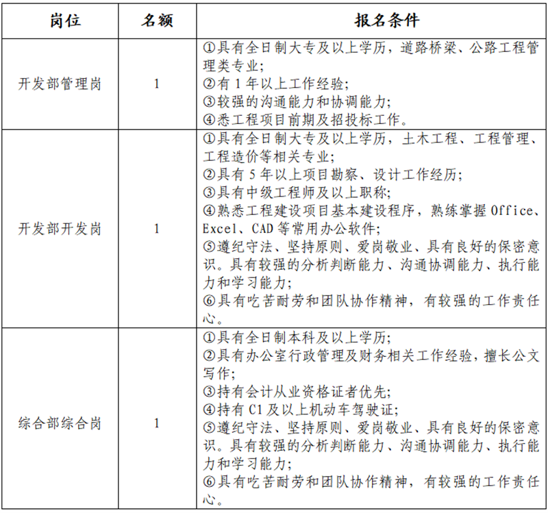雅安交建集團大興交通開發(fā)有限公司關(guān)于招聘工作人員的公告