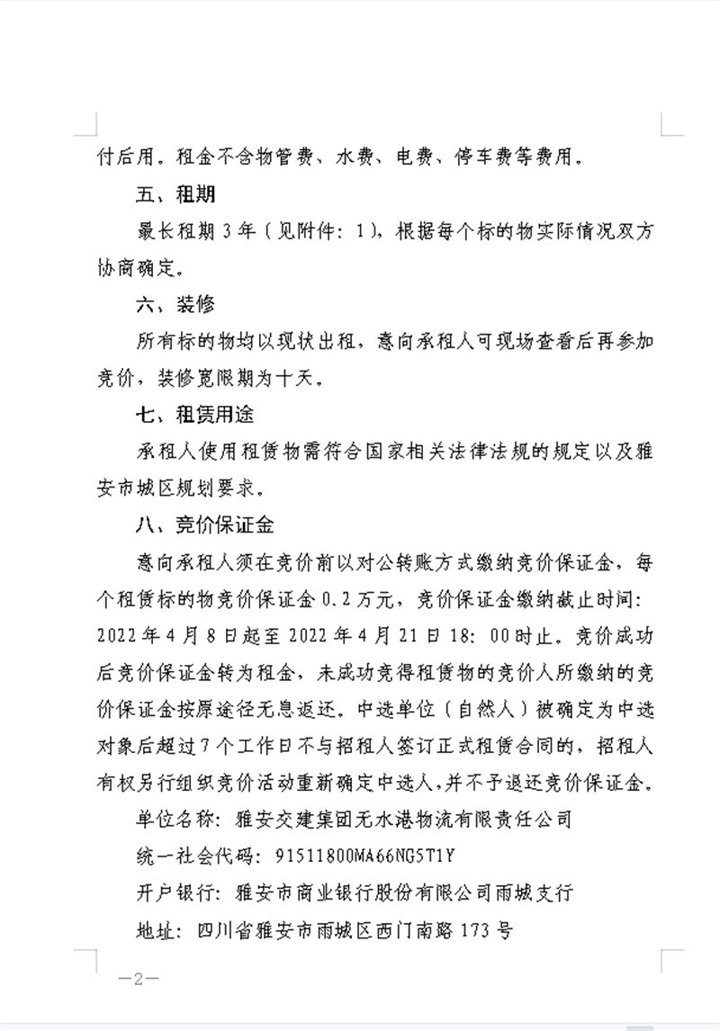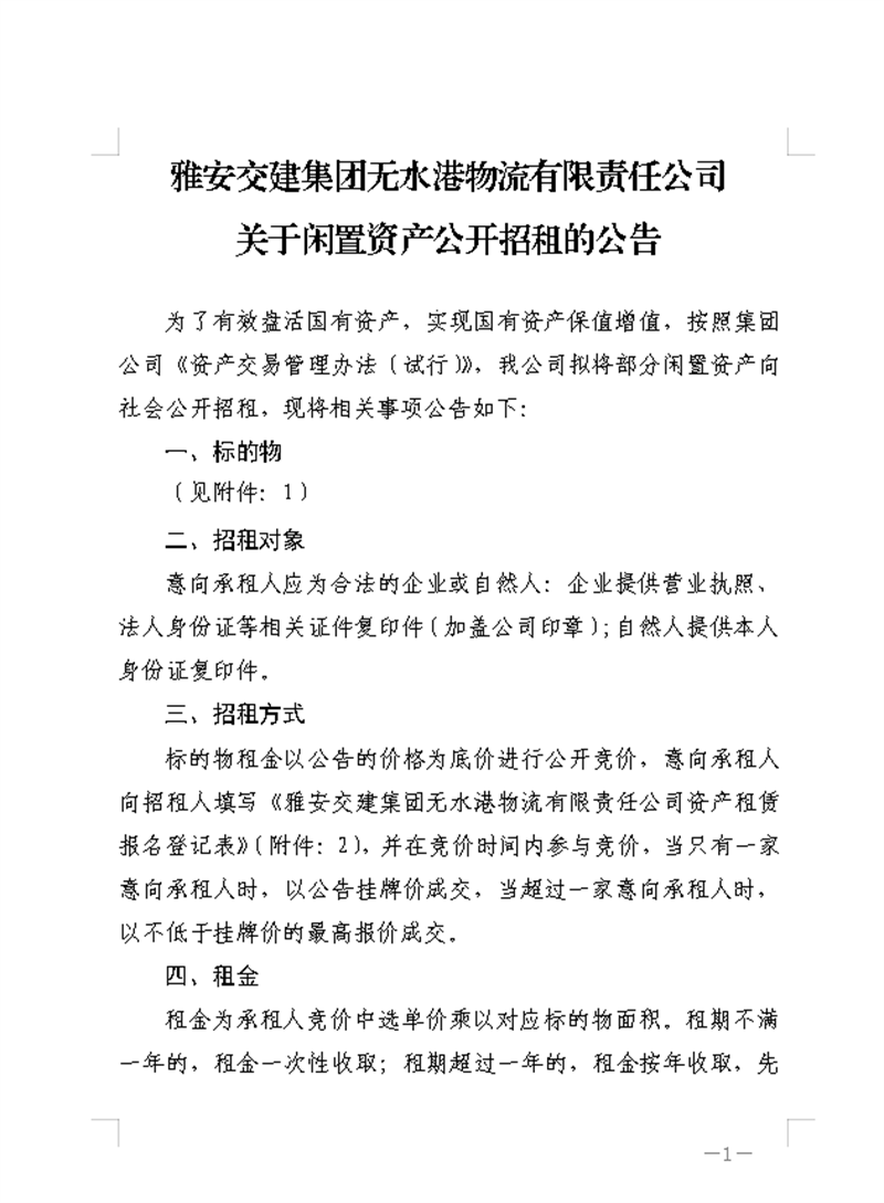 雅安交建集團無水港物流有限責任公司關(guān)于資產(chǎn)掛網(wǎng)招租的公告