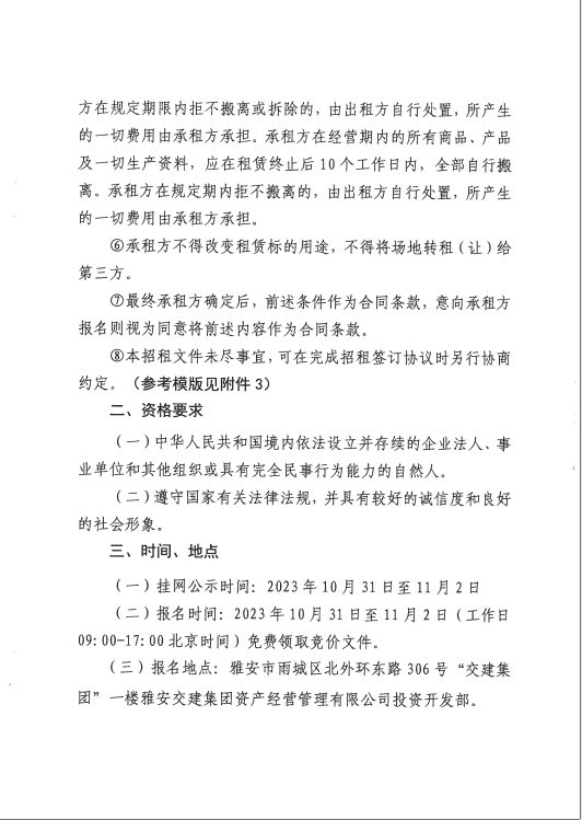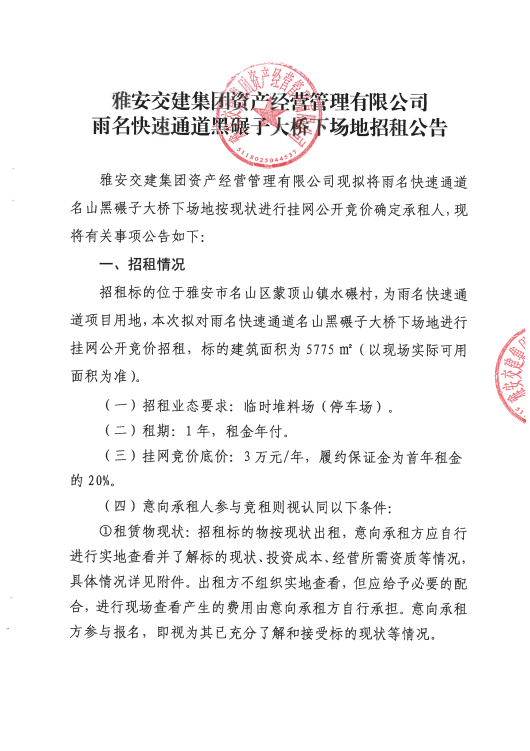 雅安交建資產經營管理有限公司雨名快速通道黑碾子場地招租公告