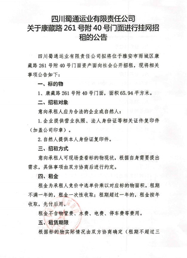 ËÄ´¨Êñͨß\(y¨´n)˜I(y¨¨)ÓÐÏÞØŸ(z¨¦)Èι«Ë¾ êP(gu¨¡n)ÓÚ¿µ²ØÂ·261Ì–(h¨¤o)¸½40Ì–(h¨¤o)éT(m¨¦n)ÃæßM(j¨¬n)ÐÐ’ì¾W(w¨£ng)ÕÐ×âµÄ¹«¸æ