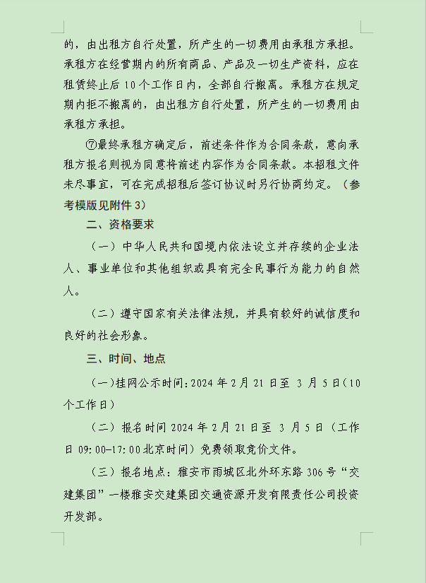 雅安交建集團(tuán)大興交通資源開(kāi)發(fā)有限公司關(guān)于雨城區(qū)姚橋片區(qū)15-09地塊2024年競(jìng)價(jià)招租的公告附件