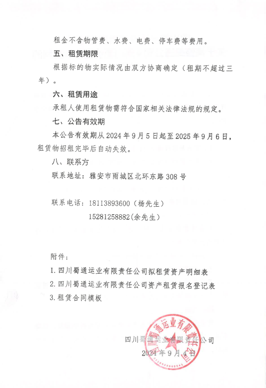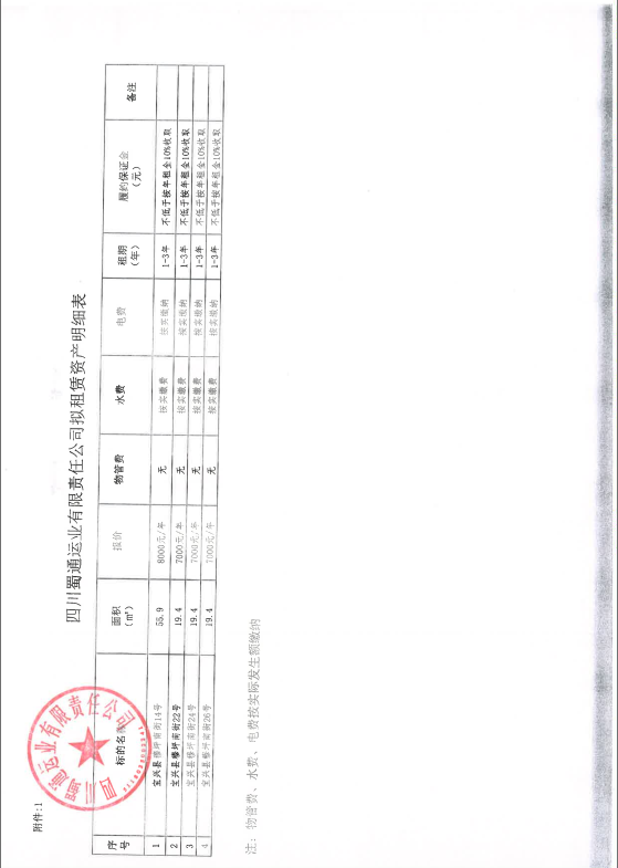 四川蜀通運(yùn)業(yè)有限責(zé)任公司關(guān)于調(diào)整蜀通公司4間門面價格二次掛網(wǎng)的公告附件