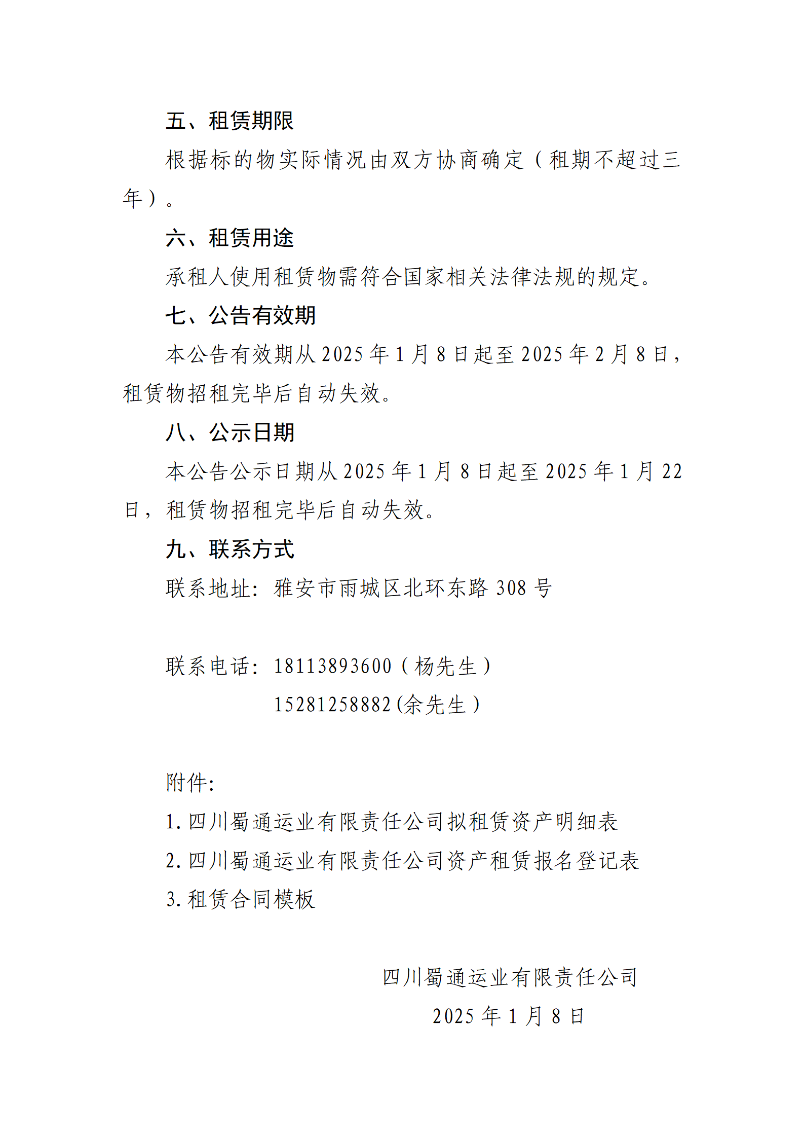 四川蜀通運(yùn)業(yè)有限責(zé)任公司 關(guān)于寶興縣沿江路140號(hào)、穆坪南街16號(hào)、18號(hào)三間商鋪進(jìn)行掛網(wǎng)招租的公告