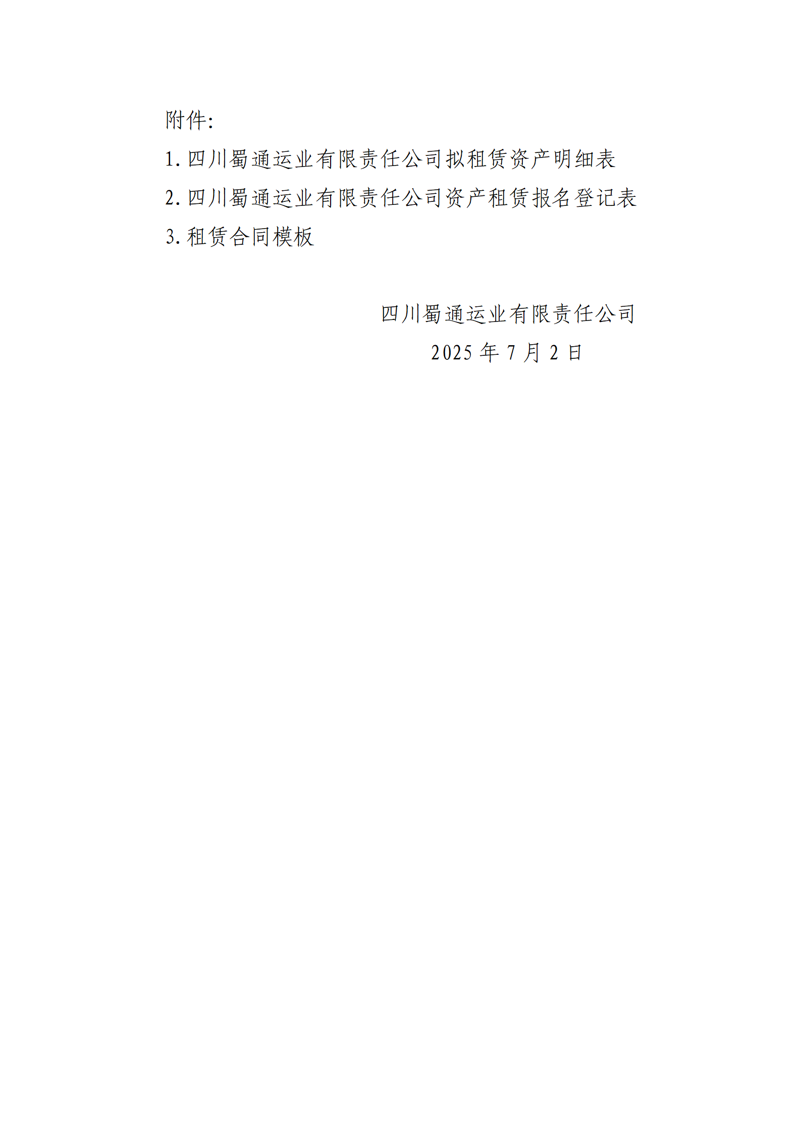 四川蜀通運業(yè)有限責任公司 關于康藏路61號附1號門面、康藏路85號場地兩處資產進行掛網招租的公告